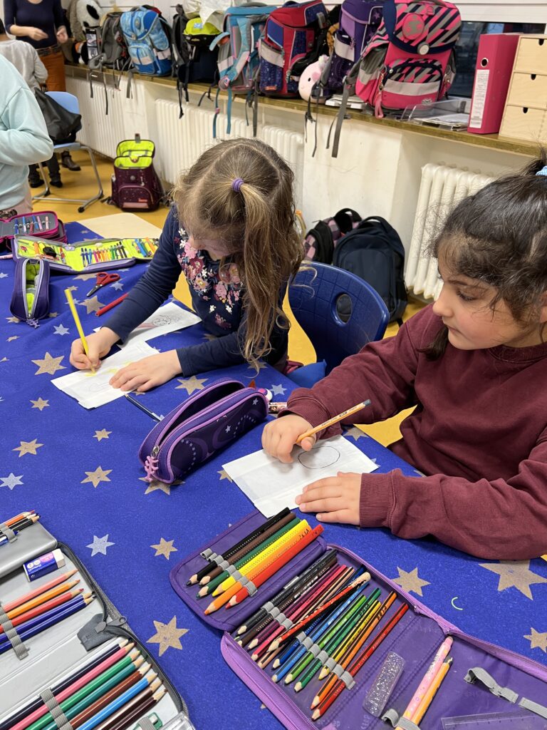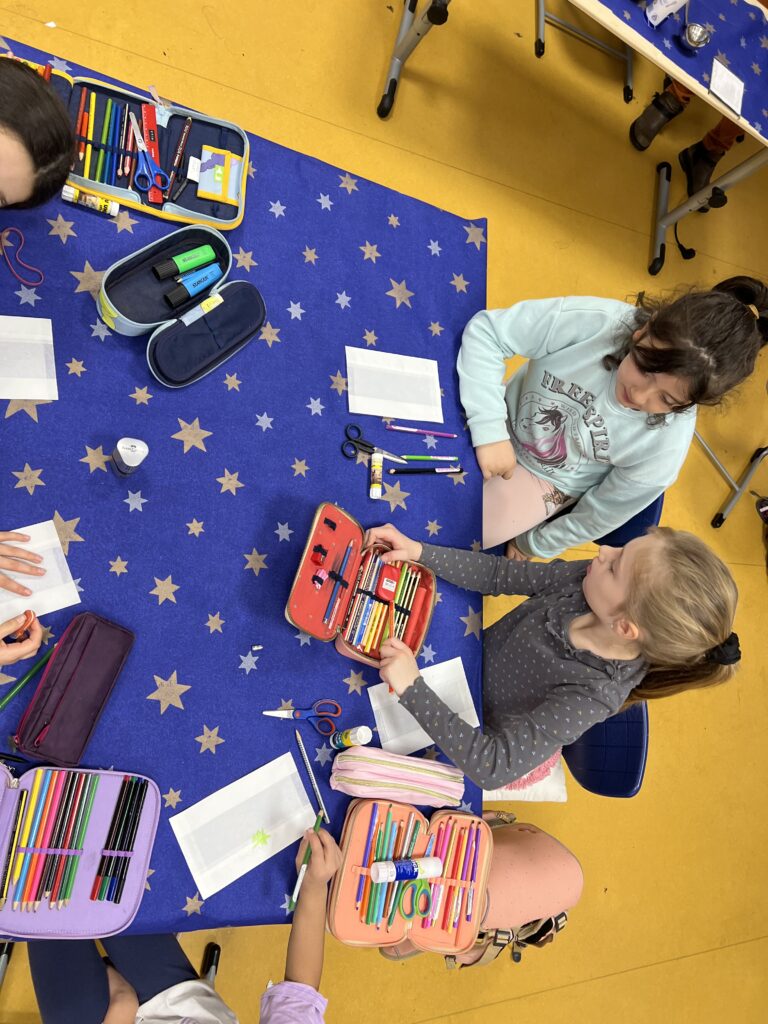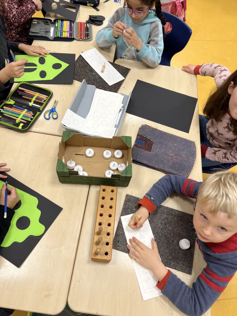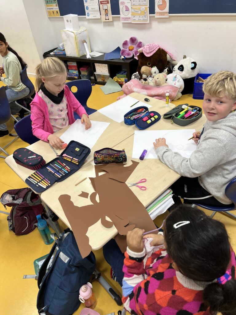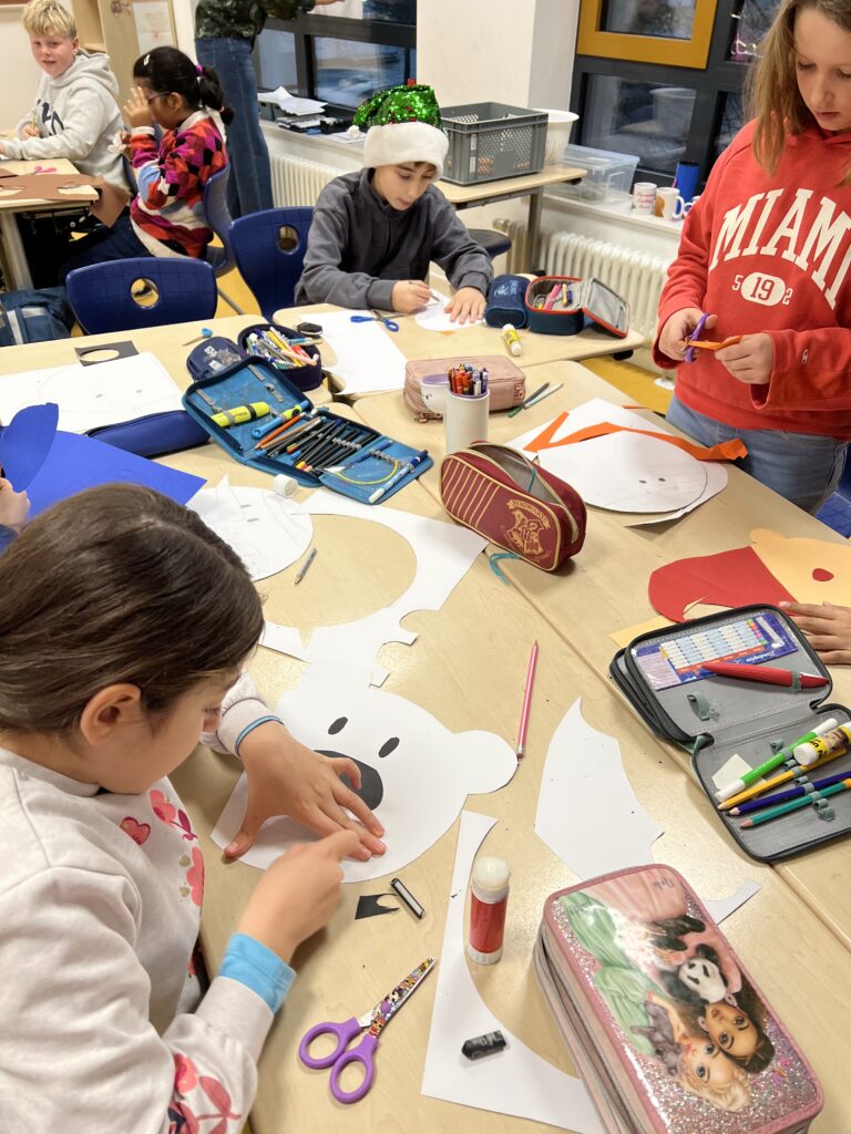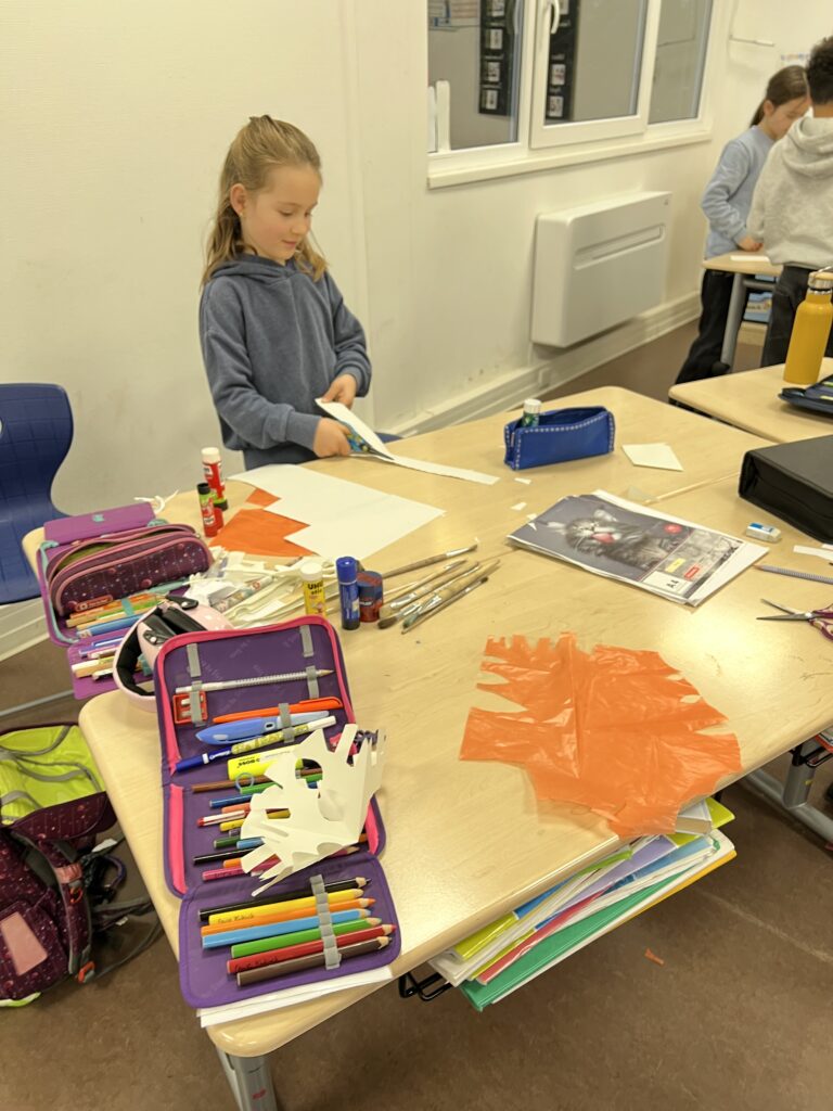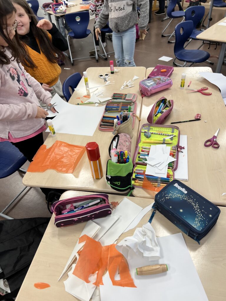 Die folgenden Bilder zeigen die Schüler*innen beim Basteln und einige Eindrücke nach dem Basteln aus den verschiedenen Klassenzimmern.