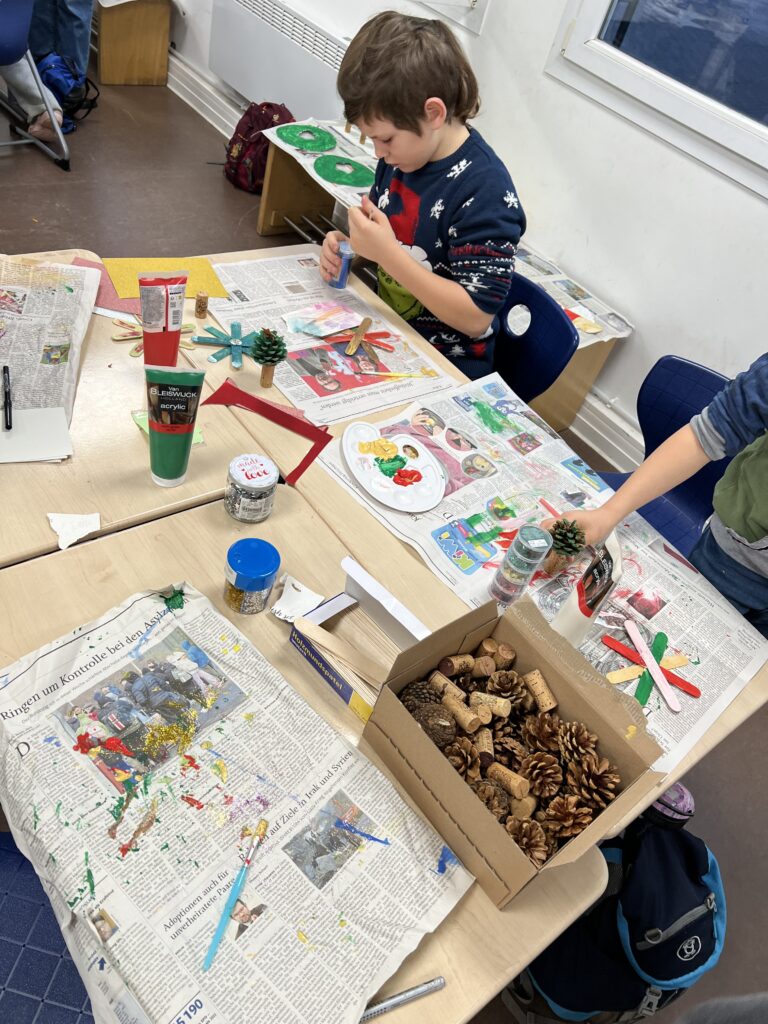 Um die Schule in der Adventszeit weihnachtlich zu gestalten, haben alle Klassen am 28.11.2025 ihre Klassenräume ganz unterschiedlich geschmückt. Die Motivation war hoch, schließlich freuen sich alle Schüler*innen in der Adventszeit auf Unterricht in einem geschmückten Klassenraum noch mehr. Frau Reyl hat mit freundlicher Mithilfe aus der 4. Klasse die Schultannenbäume geschmückt. Der 1. Dezember kann kommen. Ein herzlicher Dank gilt allen Eltern, die in verschiedenen Klassen diesen Basteltag mit unterstützt haben.