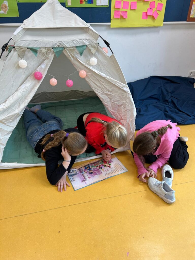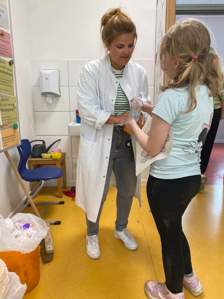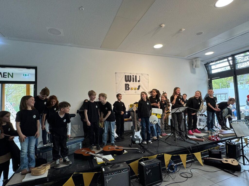 Am 17.04.2026 fand der Tag der offenen Tür an der Albert-Schweitzer Grundschule statt, in erster Linie für die Kinder, die im Sommer 2026 und 2027 zur Schule kommen, aber auch viele andere jetzige und ehemalige Schüler*innen waren an diesem Nachmittag da. Und das Schulgebäude war schnell gesäumt von Menschen, allen voran von neugierigen künftigen Schüler*innen und ihren Eltern, die gucken und ausprobieren wollten. Und davon gab es an diesem Nachmittag eine ganze Menge: Ob im Lesezelt, beim Basteln von Pompons, Buttons, Postkarten oder Lesezeichen, bei kleinen sportlichen Aktivitäten, beim Bauen mit Kapla-Steinen, Ausprobieren unserer Schul-Ipads oder beim Herstellen von eigenem „Schleim“, es gab so viel zu entdecken und zu tun. Die Cafeteria war über weite Strecken voll besetzt, vor allem auch beim viel beklatschten Auftritt unserer „Wild Bees“ um 16:00 Uhr. Das Foyer platze genauso aus allen Nähten, als unsere HipHop-AG einen fulminanten Auftritt hinlegte. Kurzum: Eine absolut gelungene Veranstaltung. Hier sehen Sie nochmal unsere Programmübersicht.