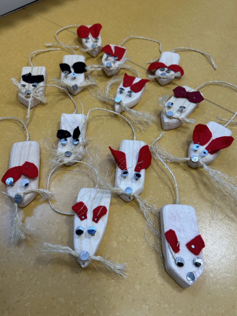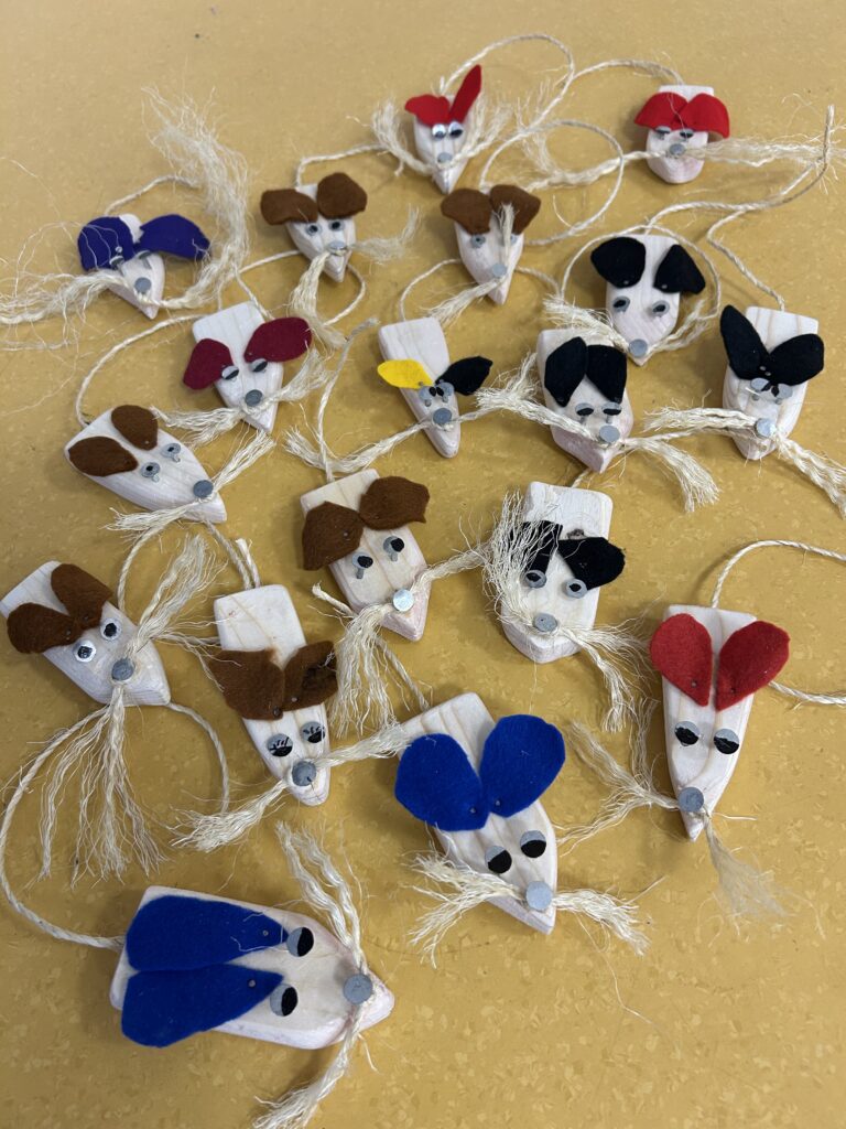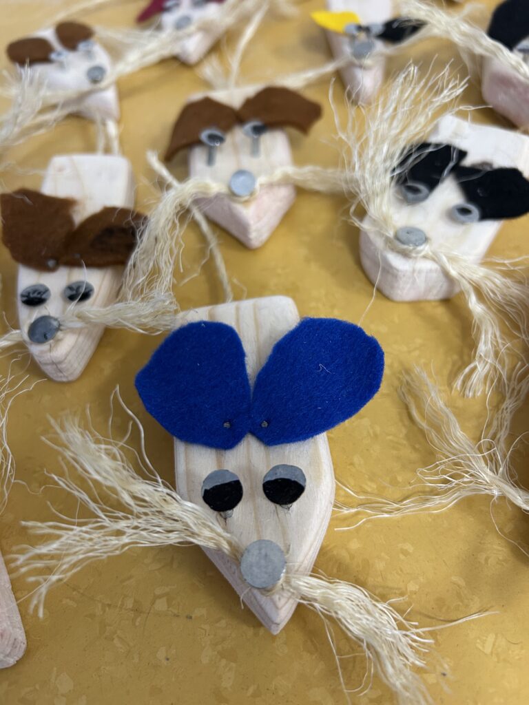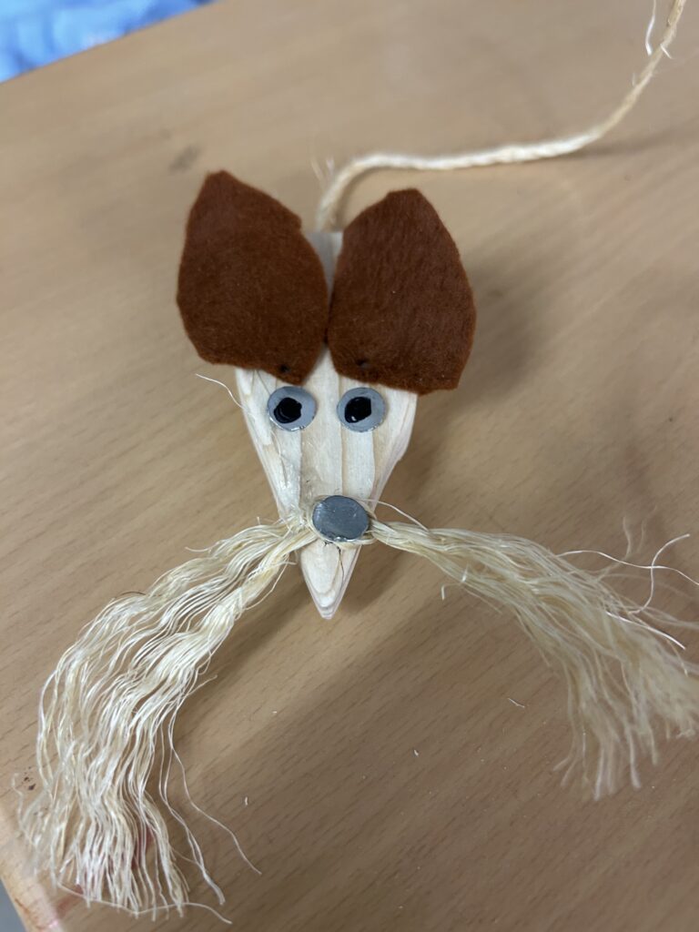 Nachdem es im Textilunterricht bereits erfolgreiche Zuchtversuche gegeben hatte, gelang nun im 4. Jahrgang im Textil/Werkunterricht ein ähnlicher Erfolg. Darauf angesprochen, äußerte sich Lehrerin wie folgt: „In 12 Schritten vom groben Klotz zum feinen Nager ? Ganz einfach: Sägen, raspeln, Pflaster kleben, schleifen, nochmal schleifen, erneut schleifen, Einsatz Handbohrer, Öhrchen schneiden, Tasthaare knoten, Nägel einschlagen, letzter Schliff, lieb haben. Fertig ist die Maus!“