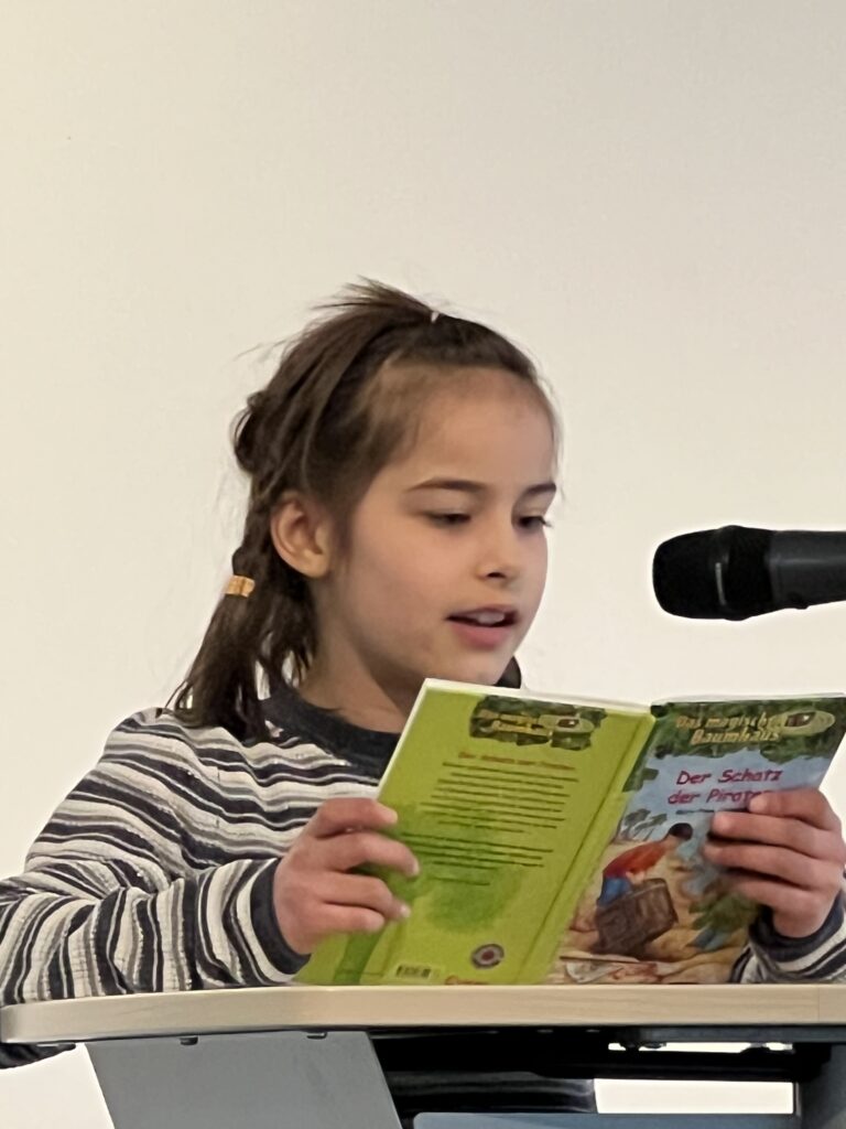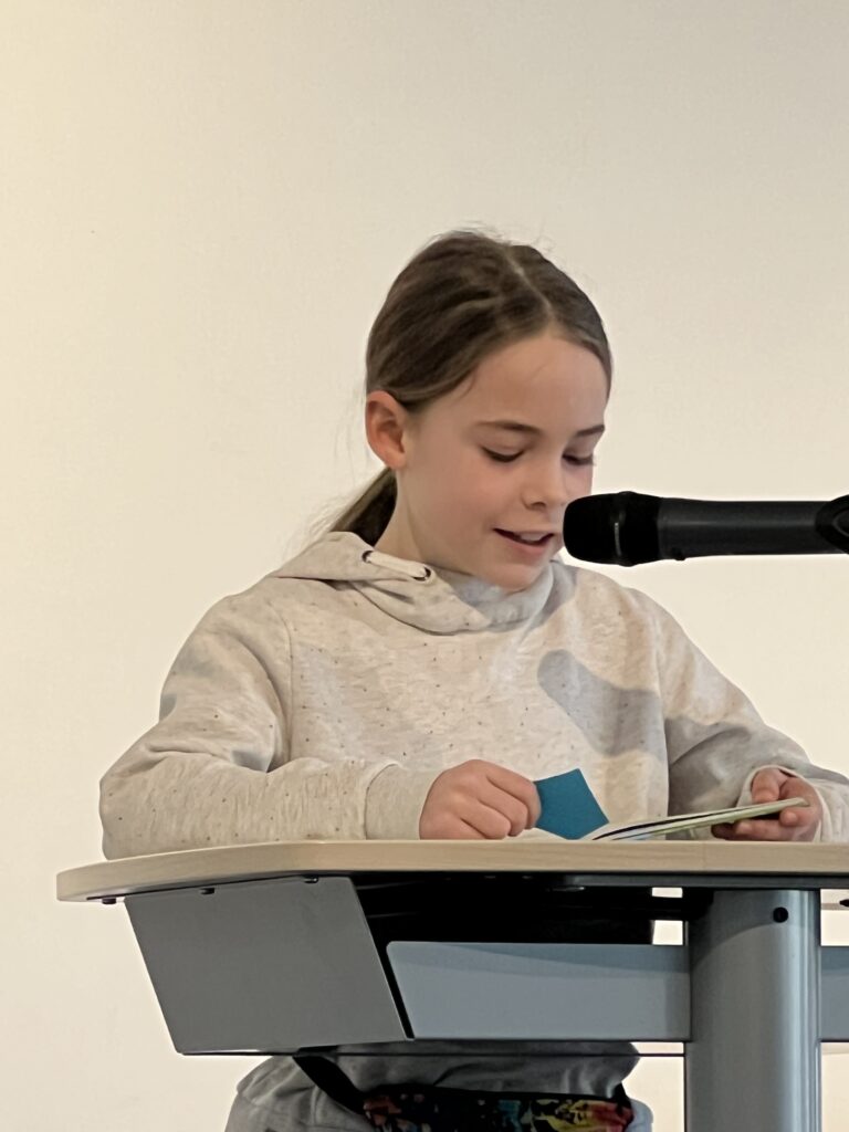 Am Freitag, den 20.02.2026 fand der alljährliche Vorlesewettbewerb der ASS statt. Aus allen 2. – 4. Klassen hatten sich 2 Leser*innen in klasseninternen Vorentscheidungen qualifiziert. In der ersten Runde galt es nun, einen vorbereiteten Text vor der gesamten Schulgemeinschaft und der 4-köpfigen Jury vorzutragen. Jede(r) Leser(in) hatte 1,5 Minuten Vorlesezeit, die für manche viel zu schnell verging. Die Lehrkräfte stellten am Ende der ersten Runde fest, dass das Niveau noch nie so hoch war wie in diesem Jahr, so gut wurde gelesen. In der zweiten Runde wurde dann ein unvorbereiteter Text vorgelesen – aber das nur noch vor der Jury.