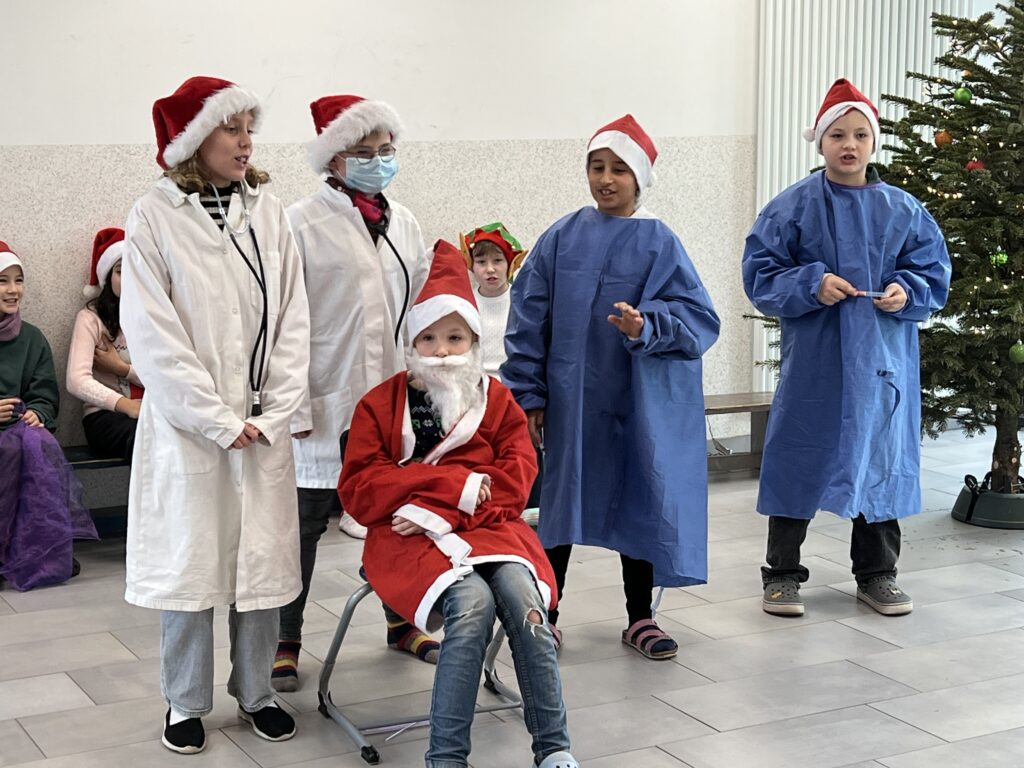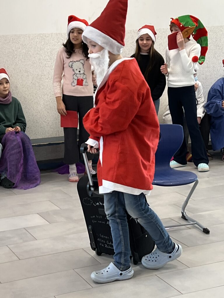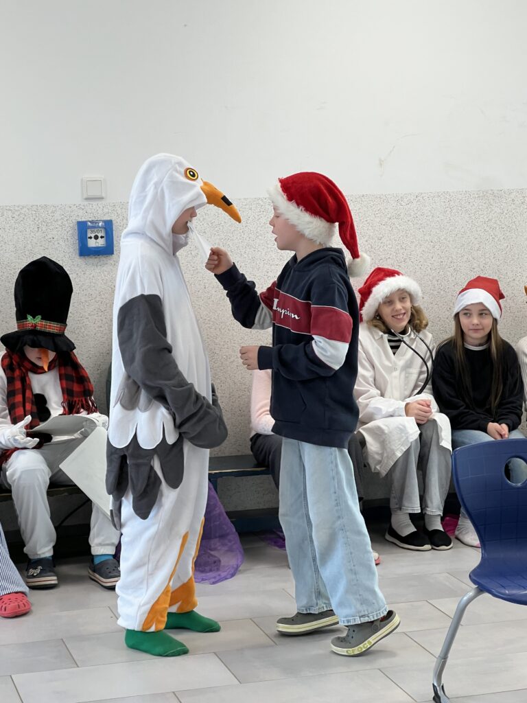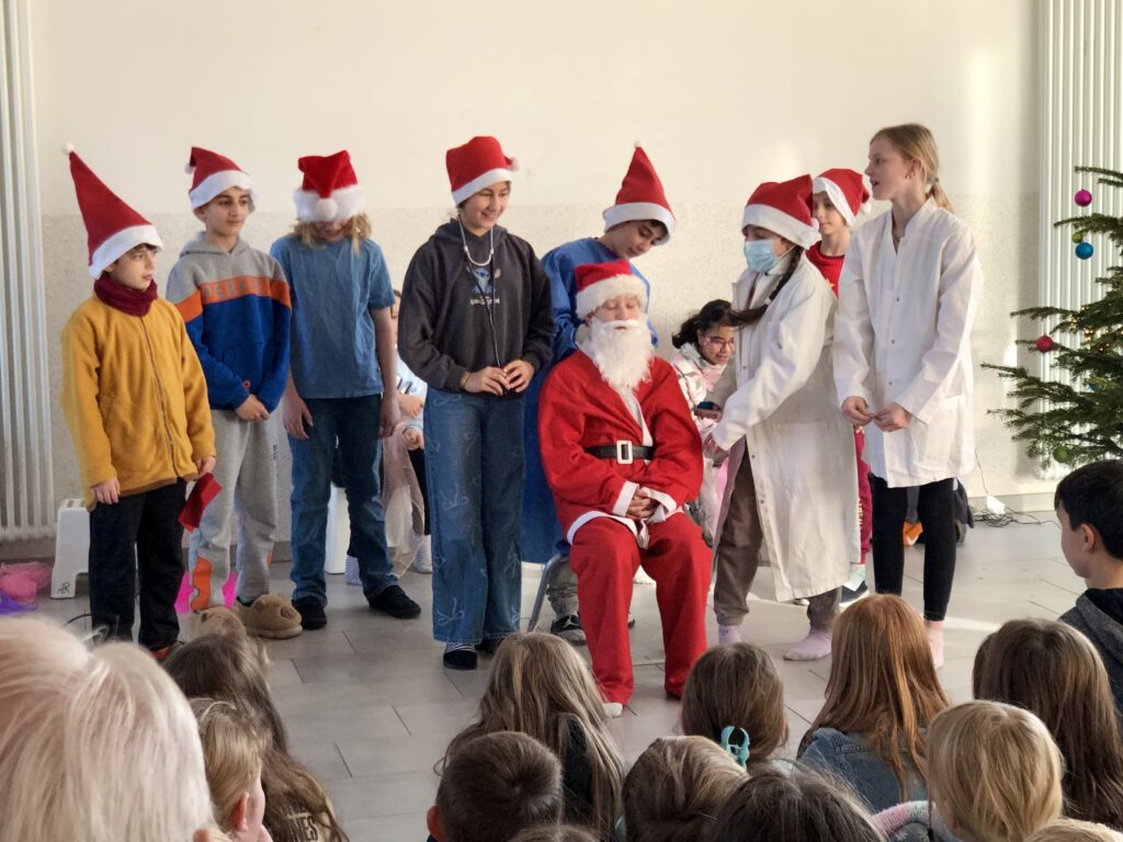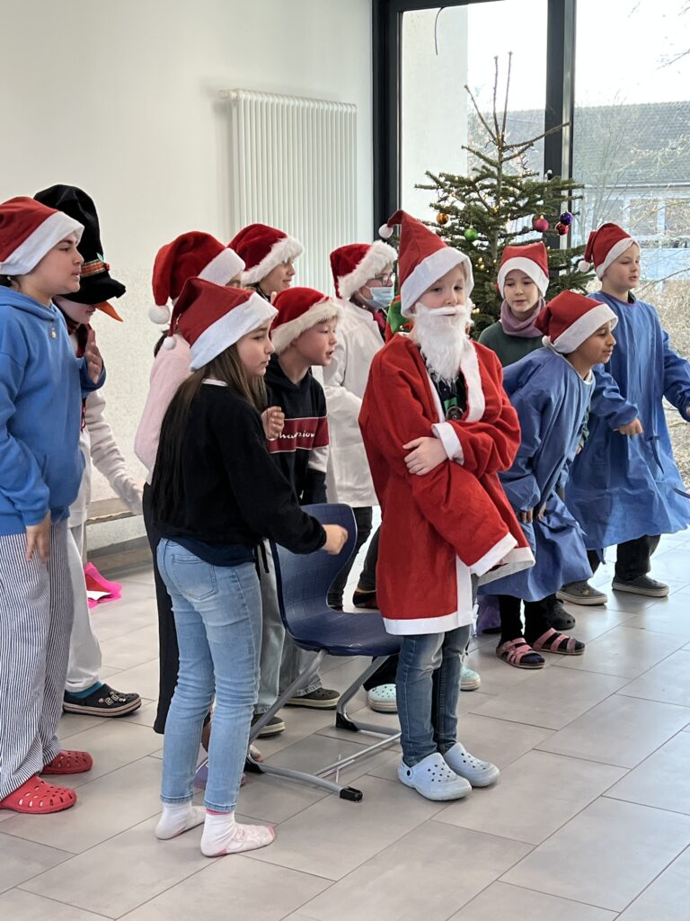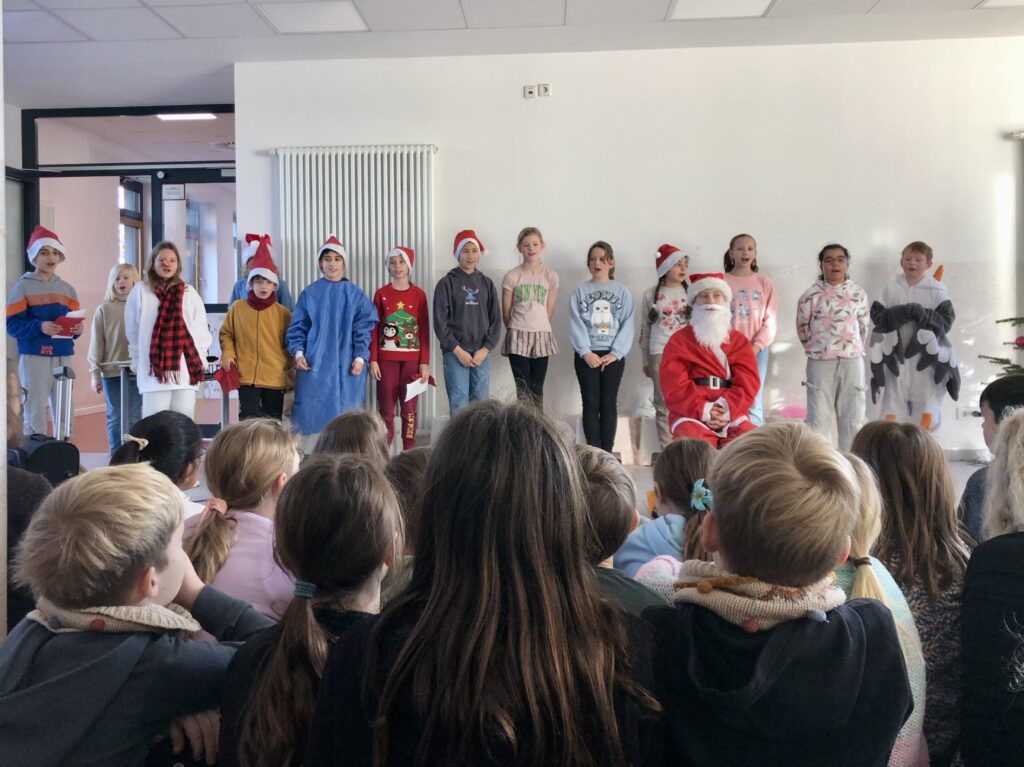 Im Musikunterricht in den 4. Klassen wurde in den letzten Wochen das Mini-Musical „Der Weihnachtsmann macht Urlaub“ erarbeitet. Aufführungen gab es von den drei vierten Klassen am 16.12. und 18.12. vormittags für die Klassen 1 -3 unserer Schule. Herzlich eingeladen waren ebenso die Eltern der vorführenden Kinder, der Aufführungsort war das Foyer im 1.OG unseres Neubaus. Einen Dank geht an Frau Maschmann, die mit den Schüler*innen solche schönen Inszenierungen im Unterricht einstudiert hat.