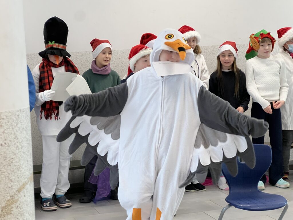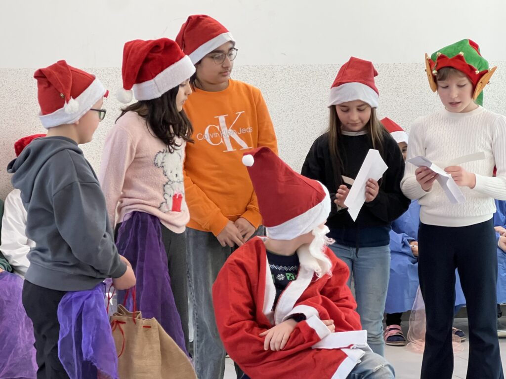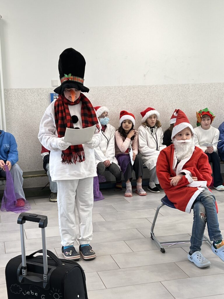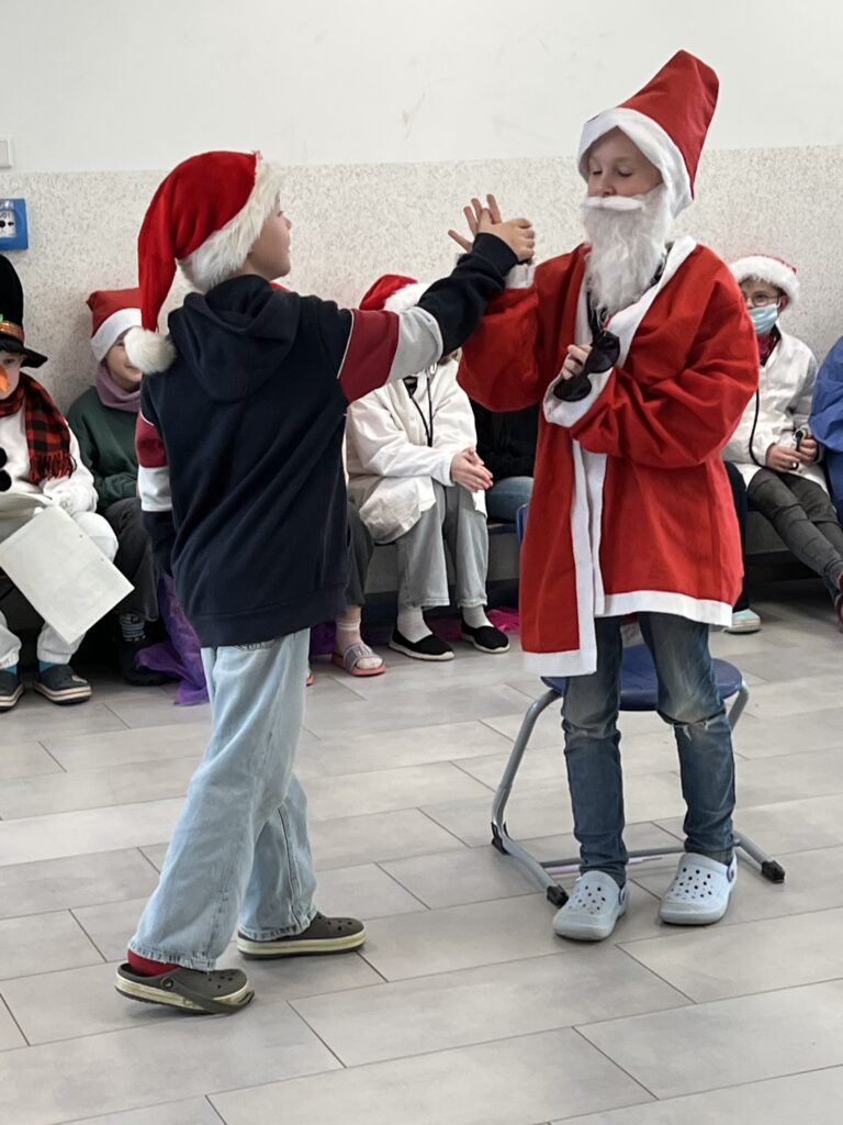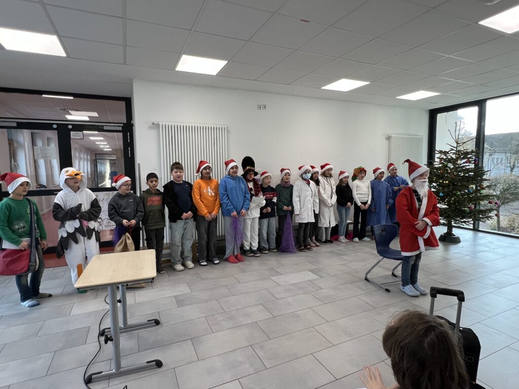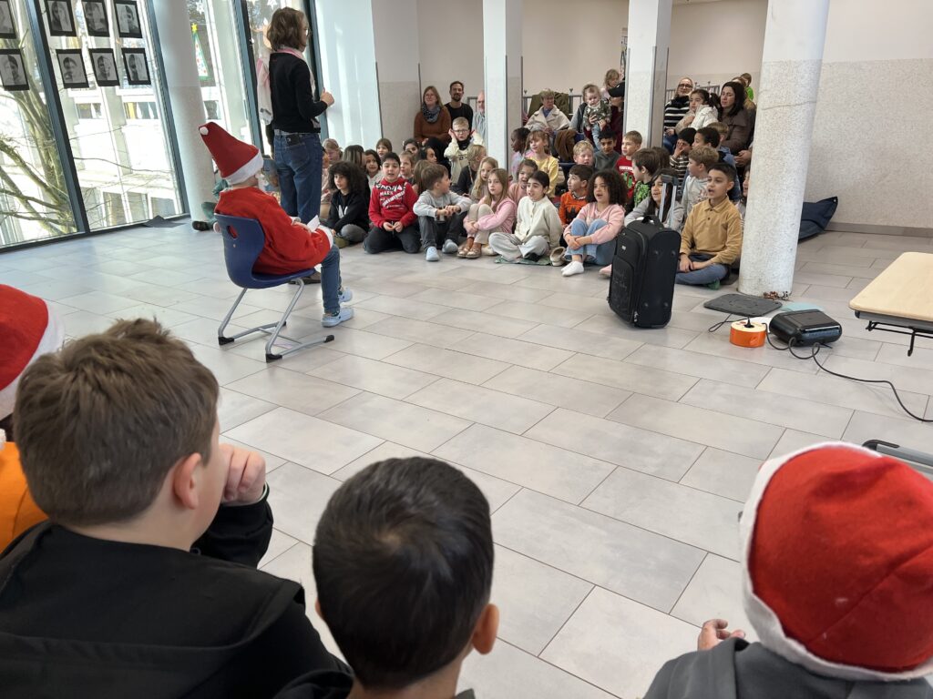 Im Musikunterricht in den 4. Klassen wurde in den letzten Wochen das Mini-Musical „Der Weihnachtsmann macht Urlaub“ erarbeitet. Aufführungen gab es von den drei vierten Klassen am 16.12. und 18.12. vormittags für die Klassen 1 -3 unserer Schule. Herzlich eingeladen waren ebenso die Eltern der vorführenden Kinder, der Aufführungsort war das Foyer im 1.OG unseres Neubaus. Einen Dank geht an Frau Maschmann, die mit den Schüler*innen solche schönen Inszenierungen im Unterricht einstudiert hat.