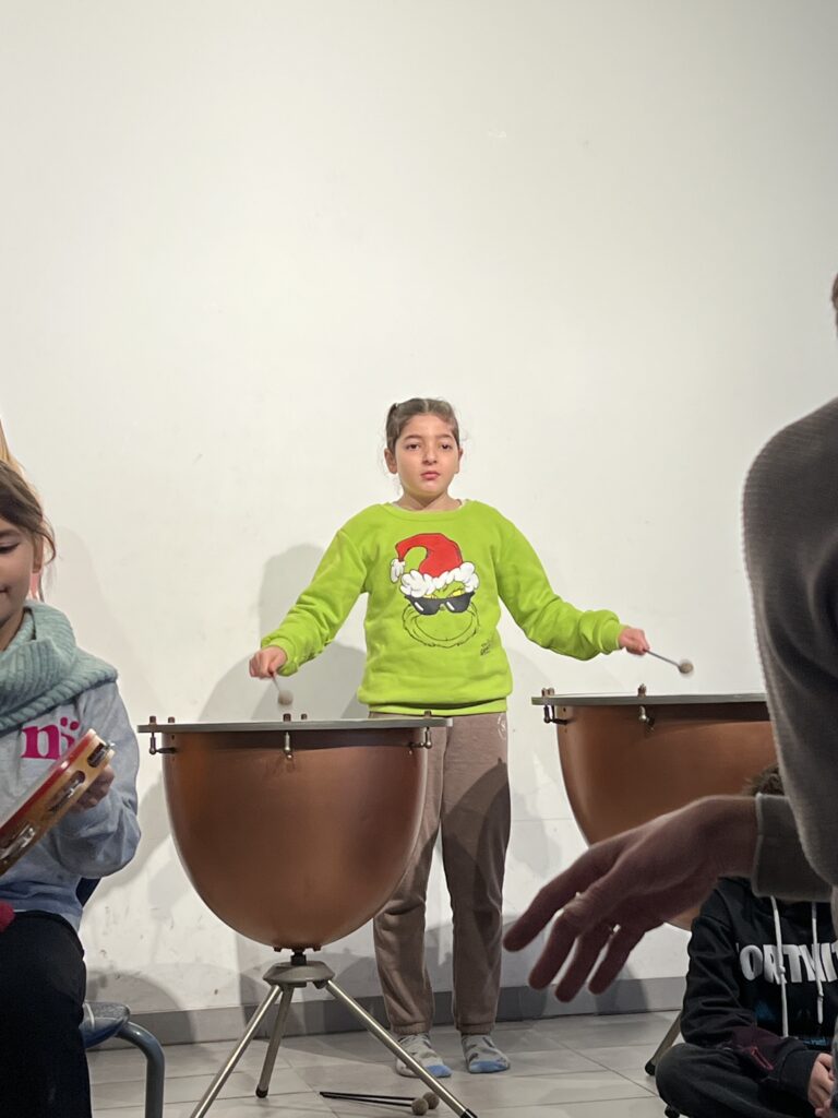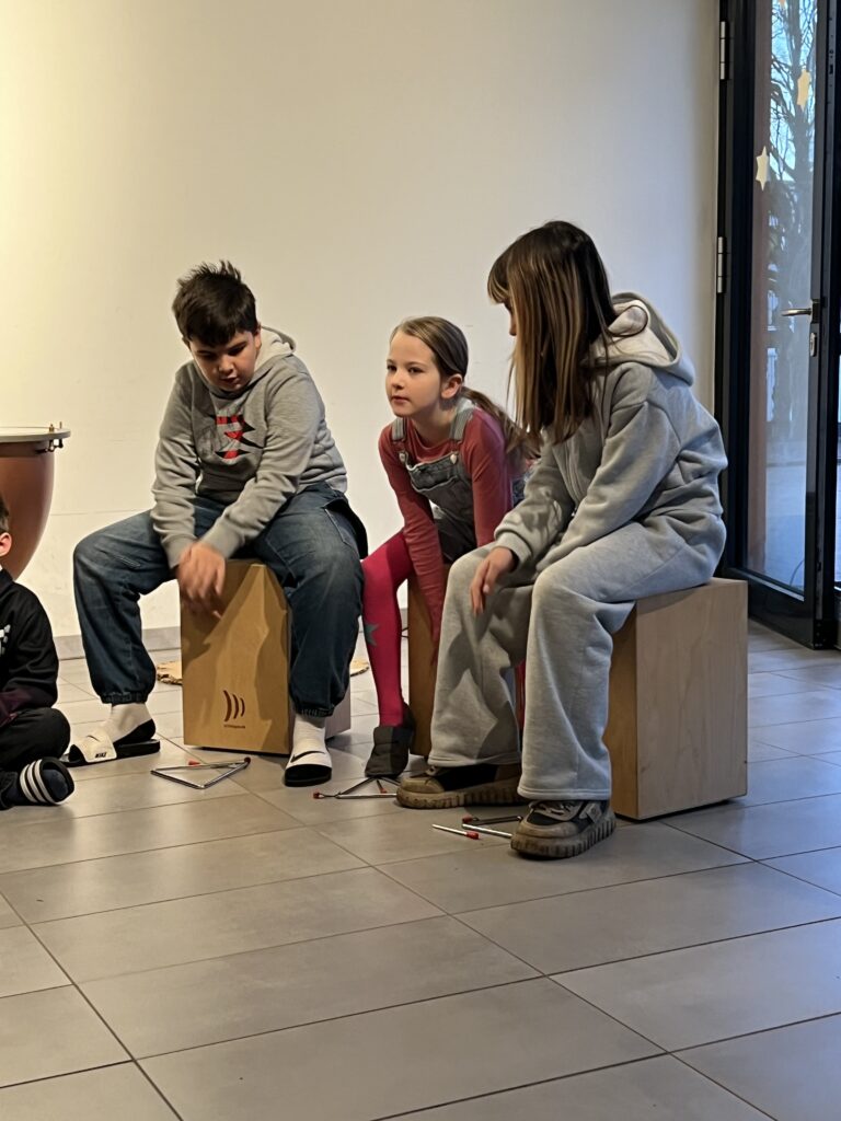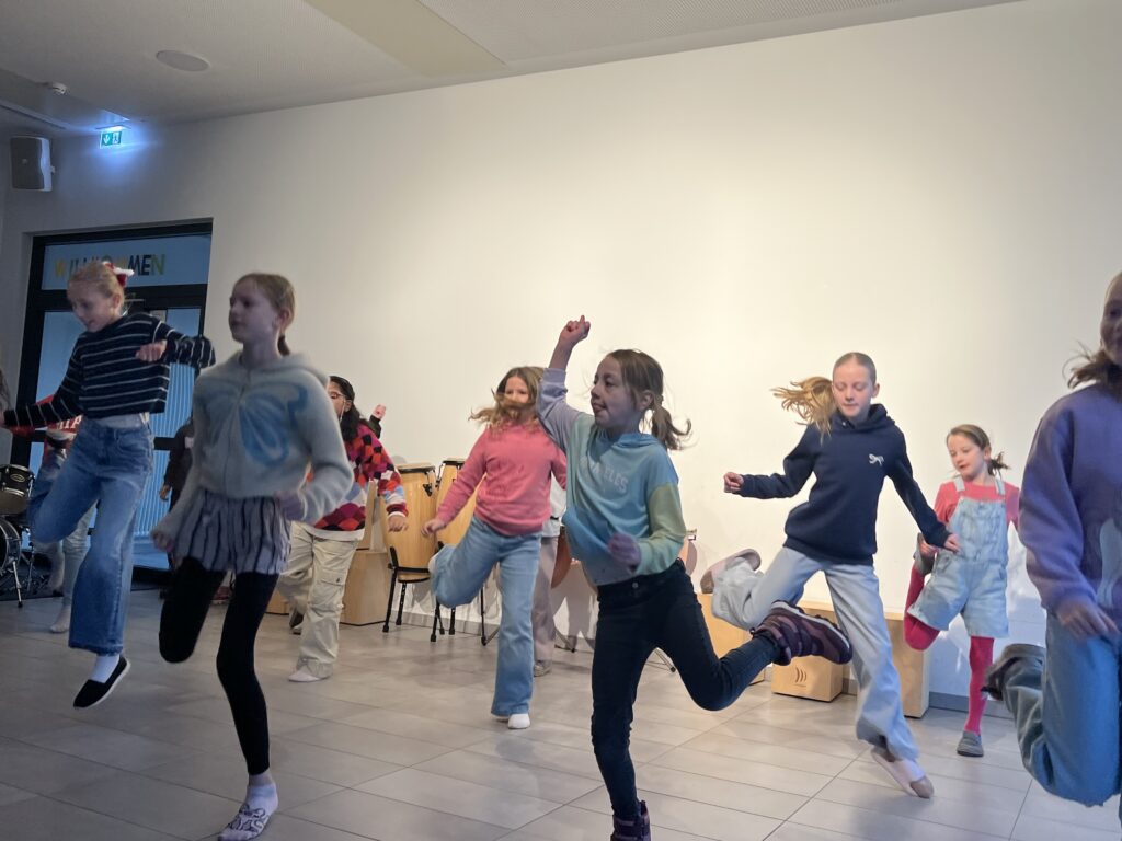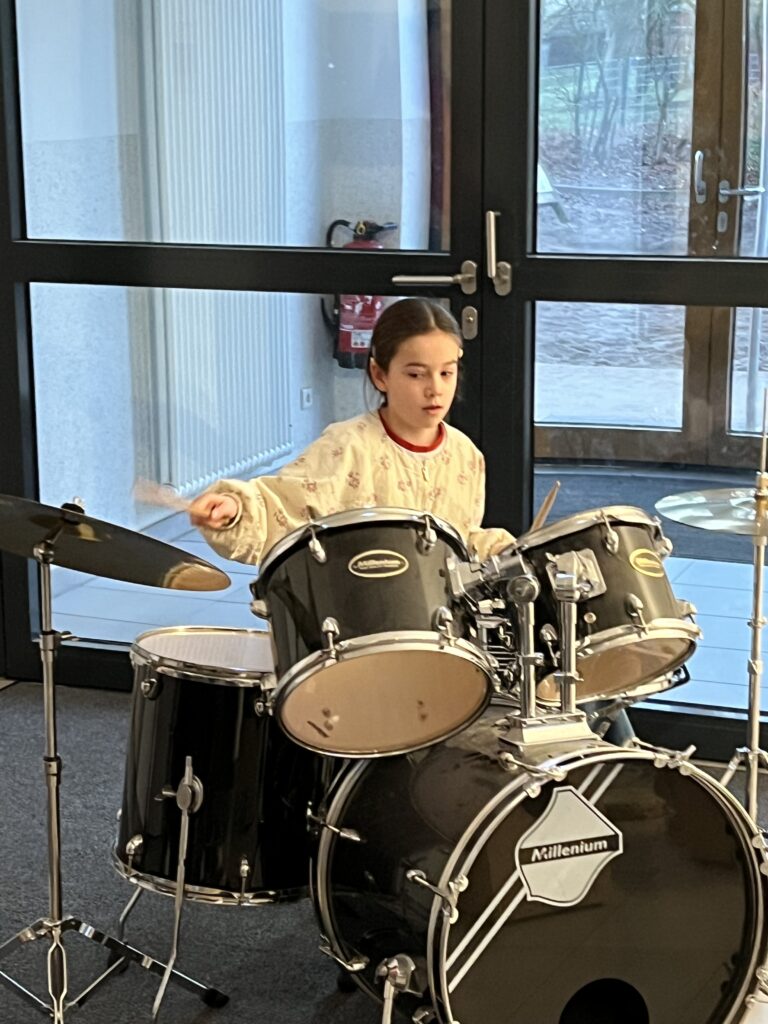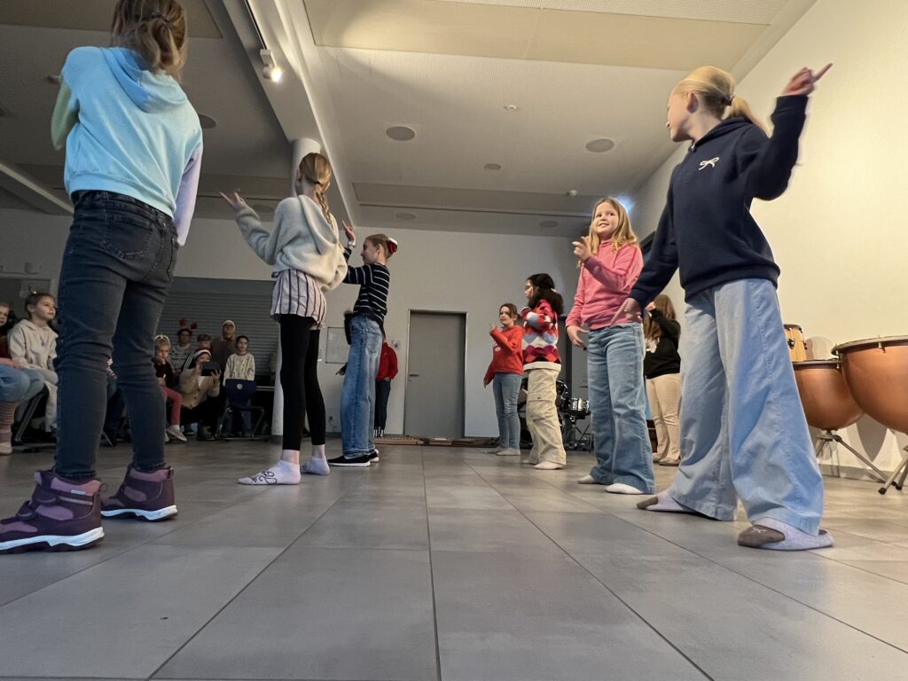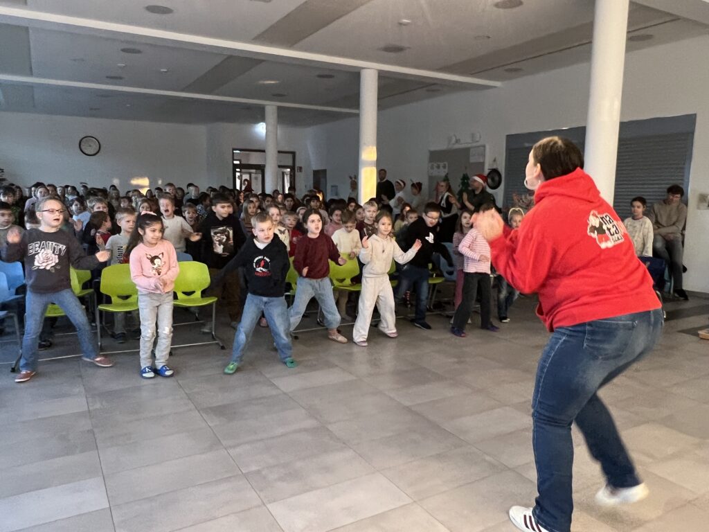 Als erstes sangen alle Klassen gemeinsam das Lied „Wieder kamen wir zusammen“, das von der Ensemble-AG begleitet wurde. Die Trommel-AG führt im Anschluss darauf ein fetziges Trommelstück vor. Die Klasse 4c hatte zwei weihnachtliche Gedichte vorbereitet („Ich wünsche mir ein Schaukelpferd“ und „Knecht Ruprecht“) und die Klasse 2b ein weihnachtliches Rhytmical zum Thema „Warten“ auf die Bescherung. Die Hip-Hop-AG – seit diesem Schuljahr neu im Ganztags-Angebot – zeigte daraufhin beindruckendes Können, was großen Applaus zur Folge hatte. Auch die Lehrer hatten sich nicht lumpen lassen und in mehrstündigen Proben (na fast …) das Lied „Last Christmas“ einstudiert, was zumindest ein halbminütiges „Zugabe – Zugabe“ seitens der Schülerschaft zur Folge hatte. Den Abschluss bildete noch mal ein weihnachtlicher Bewegungstanz für alle – initiiert von der Leiterin der Hip-Hop-AG.